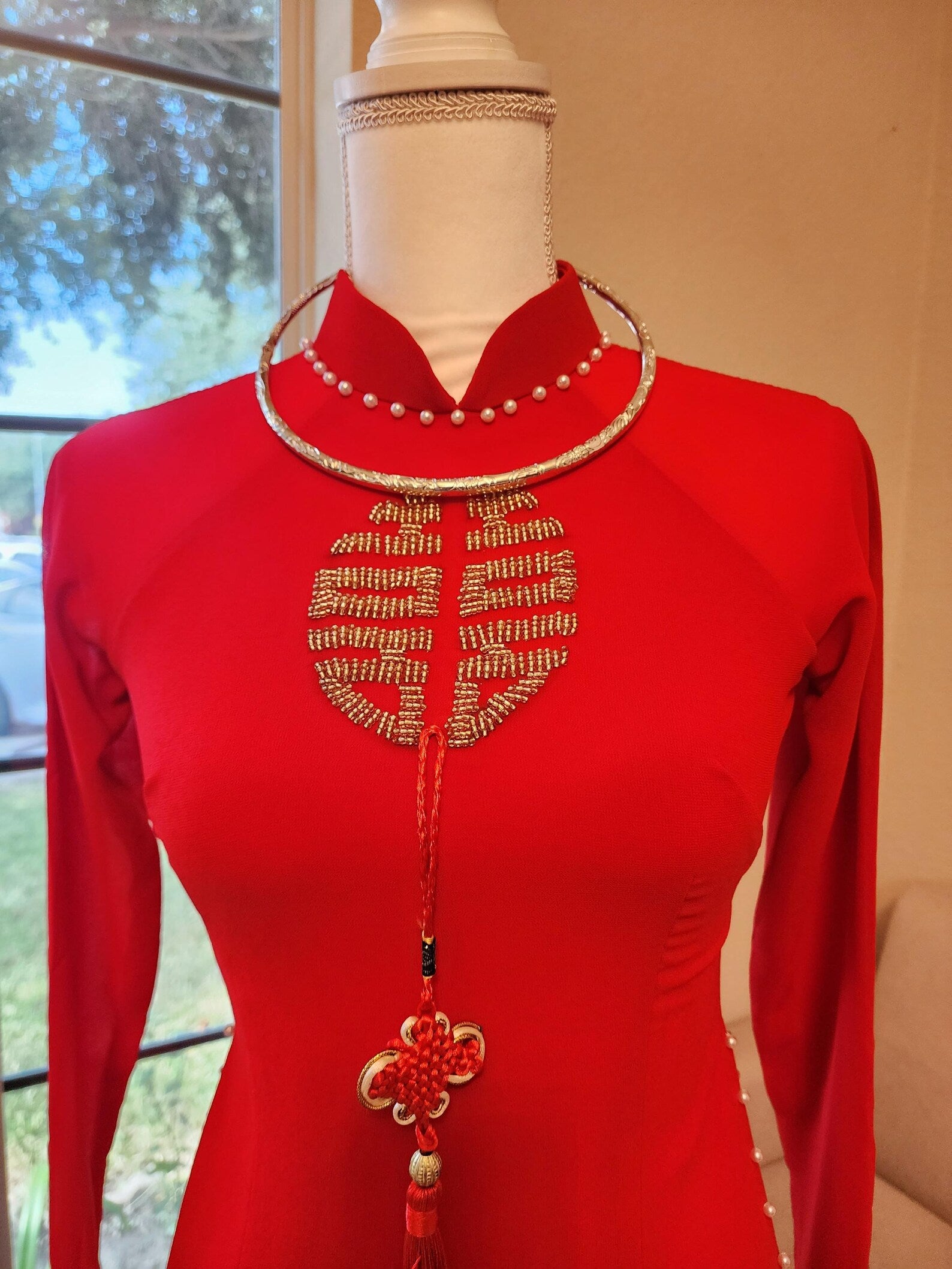 Ao Dai Design with Crystal /Traditional Long dresses VietnameseRed pants include/TT171