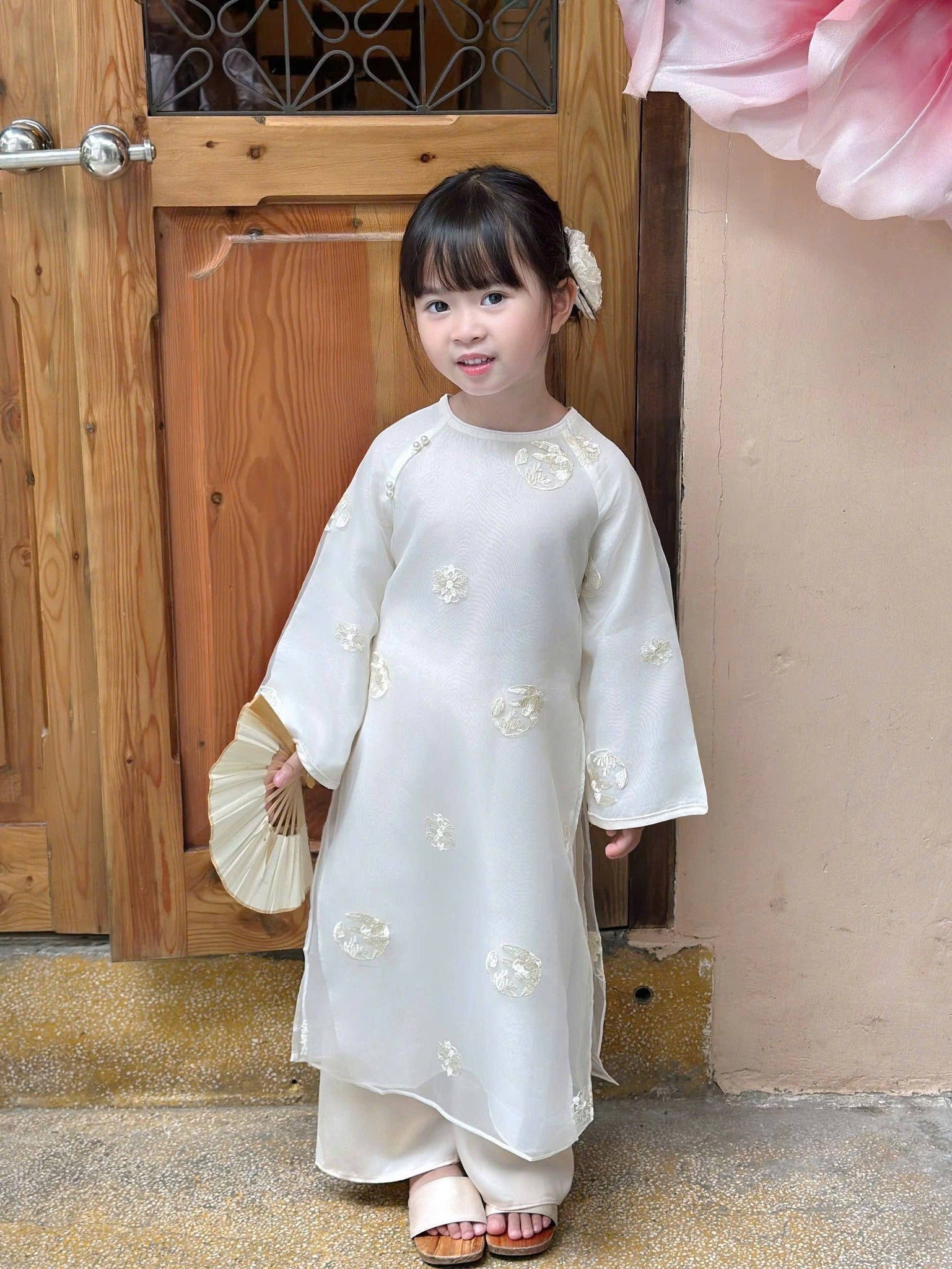 Girls' White Ao Dai Set Embroidered/Modern Vietnamese Dress/ Lunar New Year 2026