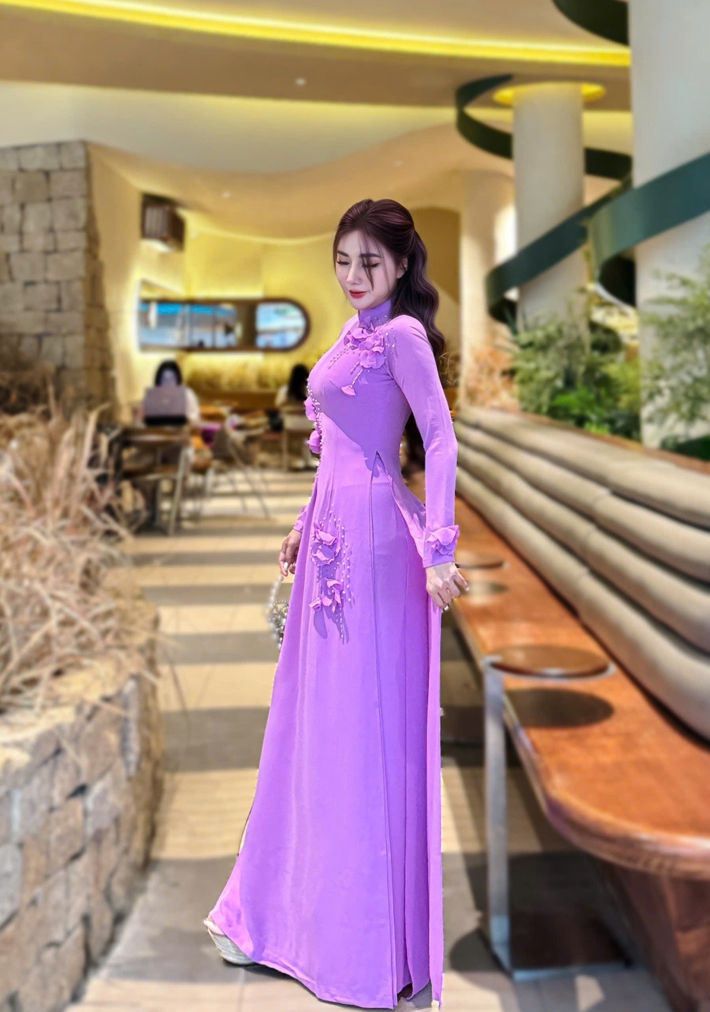 Hand Beaded Purple Ao Dai Set: Vietnamese Traditional Dress/ DS43