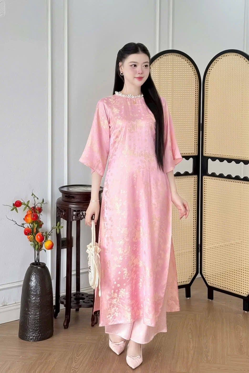 Matching Mom And Daughter Pink Ao Dai Set Lua To Tam Van Nam Loose Style/Lunar New Year 2026 MB1
