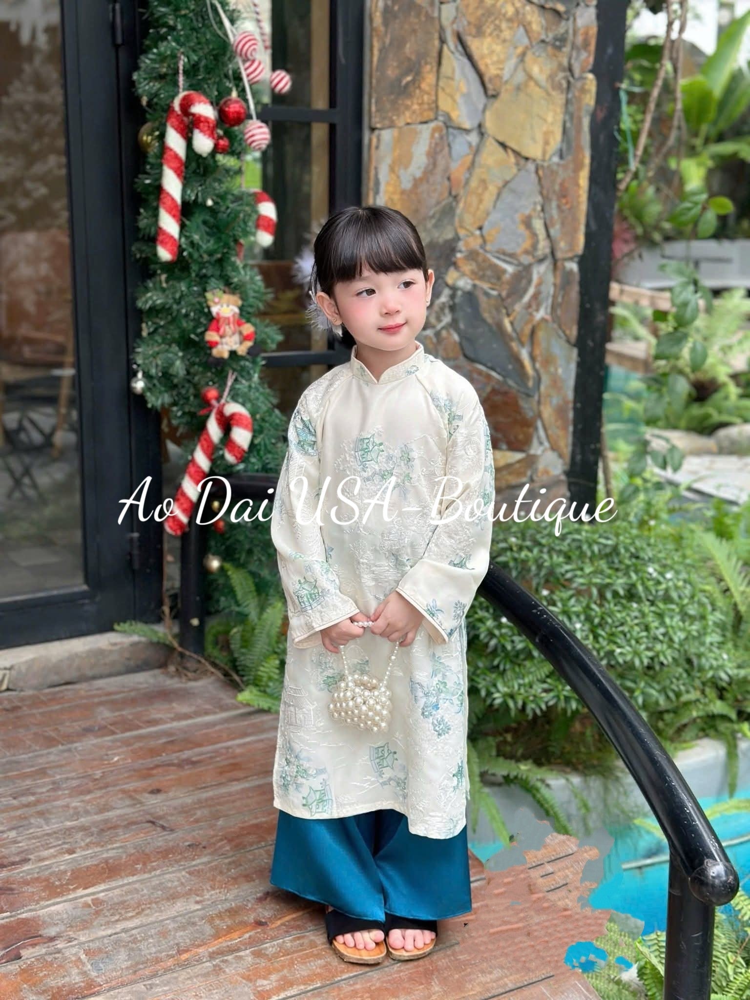 Matching Mom & Daughter Blue Ao Dai Set /Ao Dai for Girls/Floral Embroidery/ Lunar New Year 2026/ B106