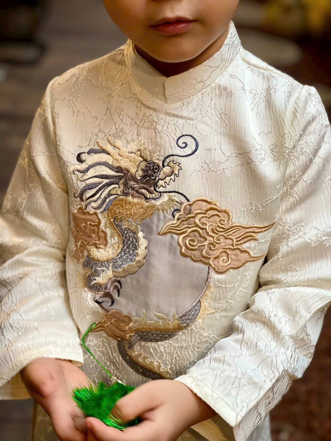 Matching White Ao Dai Set For Men and Boy/ Matching Dad-Boy Dragon / Pre-made Ao Dai Lunar New Year 2026/ Ao Dai Gia Dinh Tet