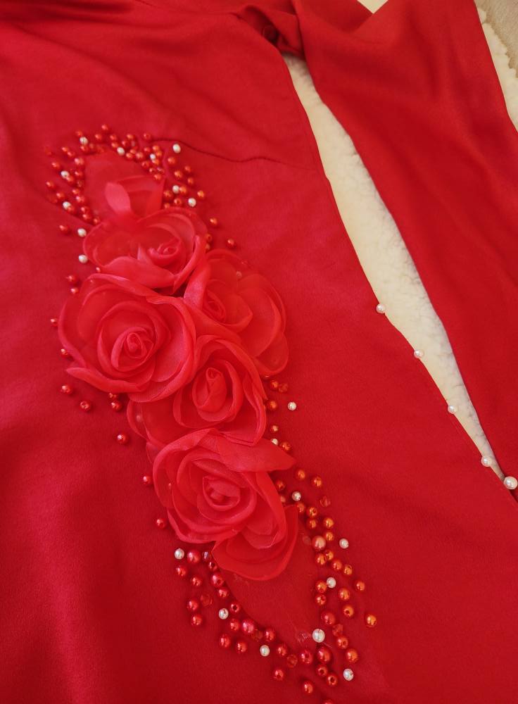 Red Ao Dai Lụa Tay Thi Set: Vietnamese Traditional Dress with White Pants CT255